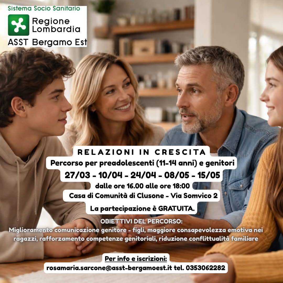 Il percorso "Relazioni in Crescita", inizierà il 10 aprile 2026 anziché il 27 marzo 2026.